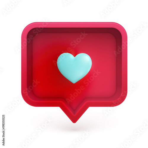 Realistic 3D speech bubble with colorful 3D heart, vector illustration