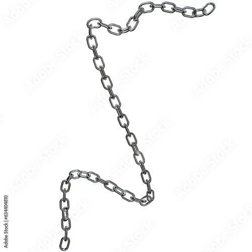 Realistic 3D Vector of a Sturdy Metal Chain with Stainless Rings, Rendered in Chrome or Steel, Isolated on a Png Transparent Background