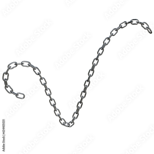 Realistic 3D Vector of a Sturdy Metal Chain with Stainless Rings, Rendered in Chrome or Steel, Isolated on a Png Transparent Background
