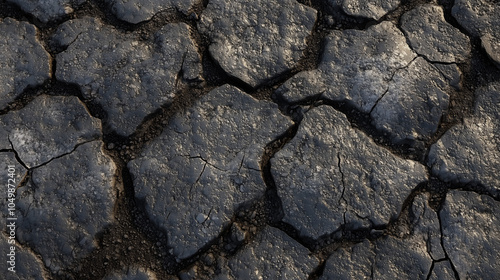 Realistic asphalt texture showing cracked surface patterns under natural light conditions