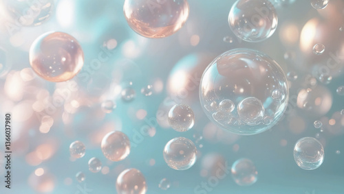 Realistic balls and clear, shiny bubbles make up the background. minimalist abstract design. Illustration in vector form