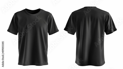 Realistic black sport T shirt mockup hanging front and back view isolated on white background with clipping path