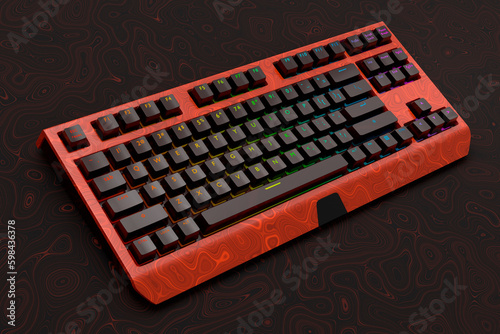 Realistic computer keyboard with seamless wavy pattern isolated on dark