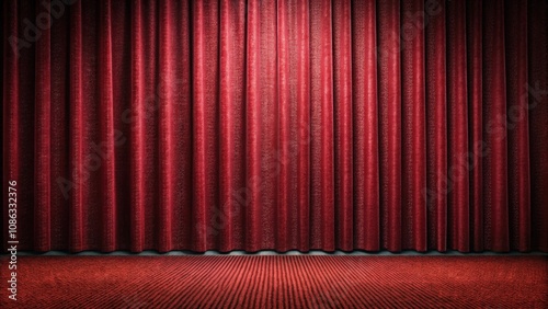 Realistic dark red textured denim curtain with red carpet flooring background , dark red, textured, denim, curtain, red
