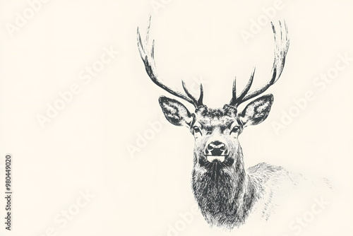Realistic deer black silhouette drawing isolated against a white background