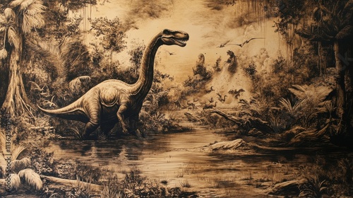 Realistic Dinosaur Scene in Lush Prehistoric Environment