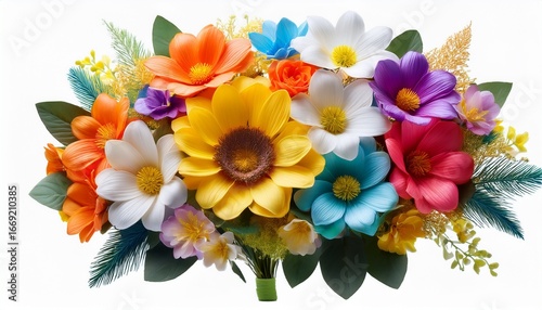 realistic fake flower bouquet with vibrant colors isolated on white transparent background