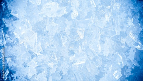 Realistic frosty ice texture with cold blue tones and crystal details, AI generated for winter themes.