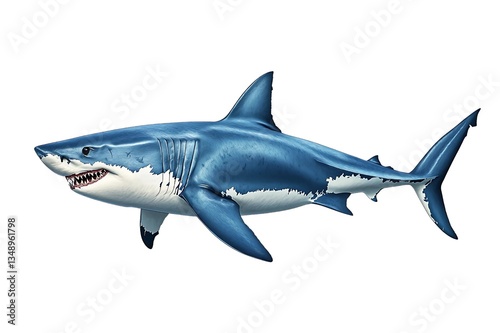 Realistic Great White Shark Illustration – Powerful Marine Predator with Sharp Teeth and Streamlined Body