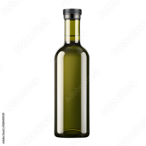 Realistic green glass bottle with black cap, isolated on a transparent background, perfect for highlighting your product