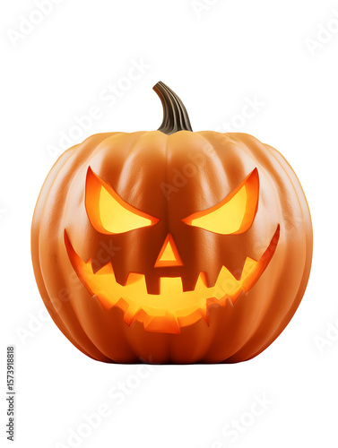 realistic Halloween school pumpkin mockup, top view with a carved face, isolated on transparent background