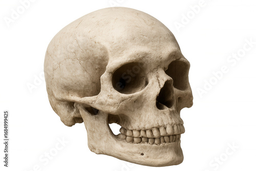 Realistic human skull isolated on transparent background, perfect for anatomical studies, halloween projects, or any design needing a touch of macabre