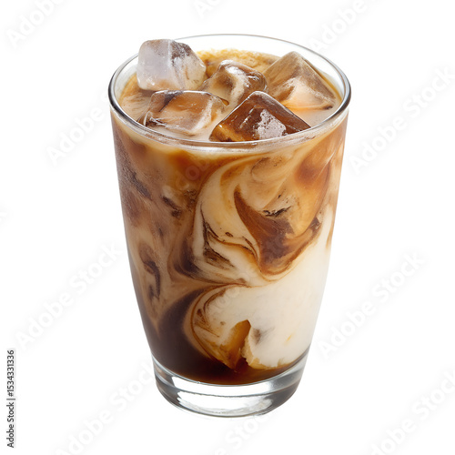 realistic iced coffee in glass isolated on transparent background png