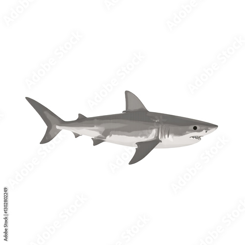 Realistic Illustration of a Gray and White Shark Swimming Freely in Transparent White Background