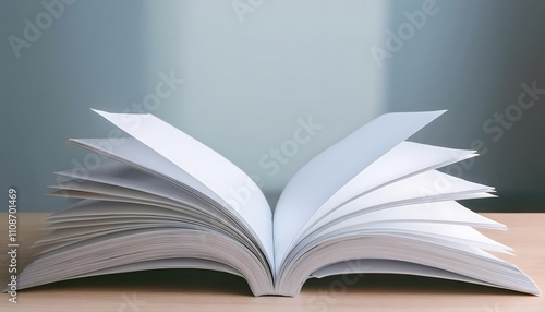 Realistic magazine cover template with editable text, open on table, 3D illustration. mockup, showcase, product.