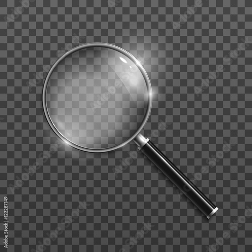 Realistic magnifying glass. Isolated on black transparent background. Vector illustration, eps 10.