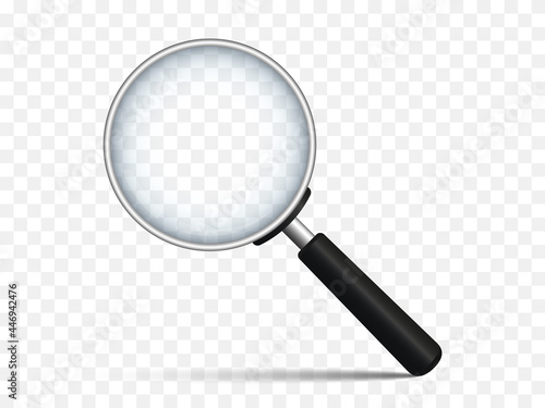 Realistic magnifying glass with shadow on a transparent background. Loupe for magnify. Vector illustration