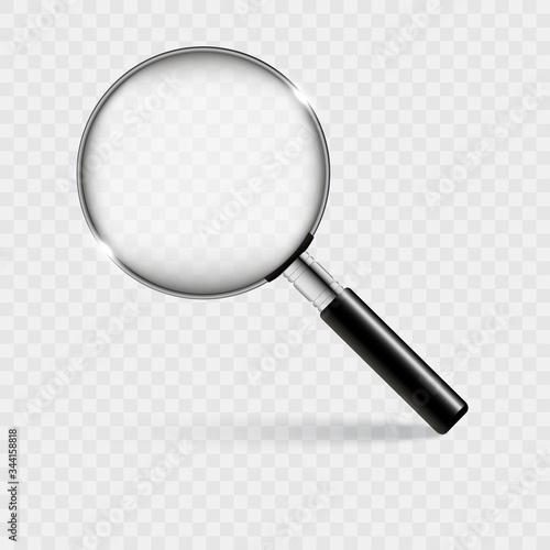 Realistic magnifying glass with shadow on a transparent background. Vector.