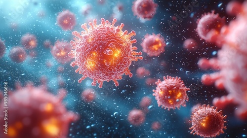 Realistic Microscopic Molecular 3D Medical Background. Pathological Viruses and Bacterias Microbiology Banner for Medicine Designs.
