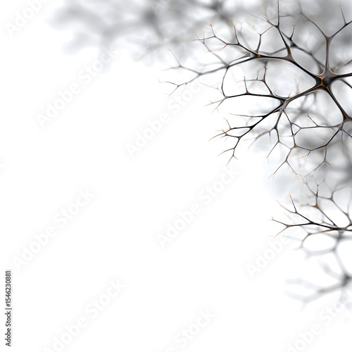 Realistic neural network branches artfully spread across the frame against a clean white background with open copy space for text or graphics overlay needs.