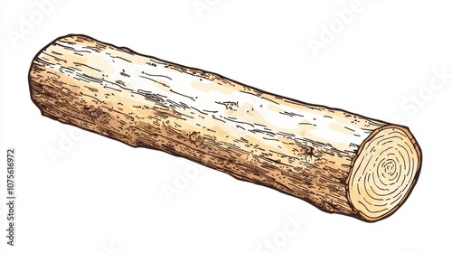 Realistic of a Raw Timber Log on a White Background, Displaying Natural Grain Patterns, Ideal for Woodworking Designs and Sustainable Craft Projects