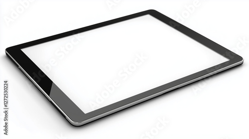 Realistic Perspective Tablet Mockup with a Black Frame and Empty Screen on a White Surface