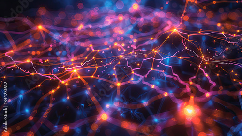 Realistic photo of neural networks visualized as glowing interconnected nodes, AI theme