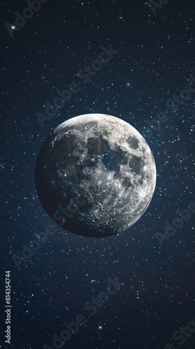 realistic photograph of space. close photo of moon. moon is located on the bottom part of the photo. stars are on the background