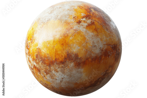 Realistic planet texture with yellow and orange hues, isolated. transparent background