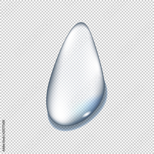 Realistic pure and transparent water drops set with shadow on gray background. Vector illustration