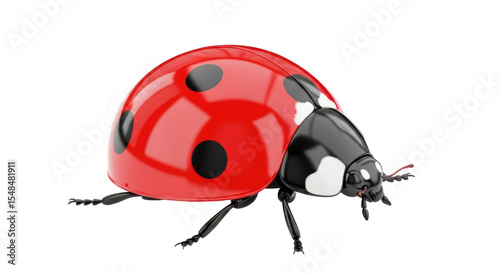 Realistic Red Ladybug with Black Spots on White Background for Nature and Insect Themes