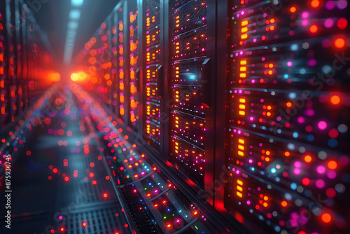 Realistic Server Racks on Modern Tech Background