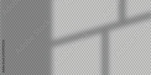 Realistic shadow overlay of window frame light, natural soft window shadows isolated on transparent background for photo mockups, design, and presentations