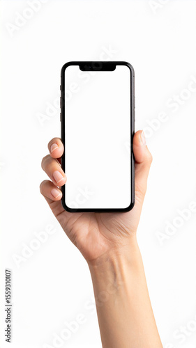 Realistic Smartphone in Hand Mockup – Blank Screen for App or UI Design, Isolated on White
