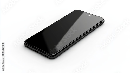 Realistic smartphone in jet black, blank display, placed on a white background for UI design presentations