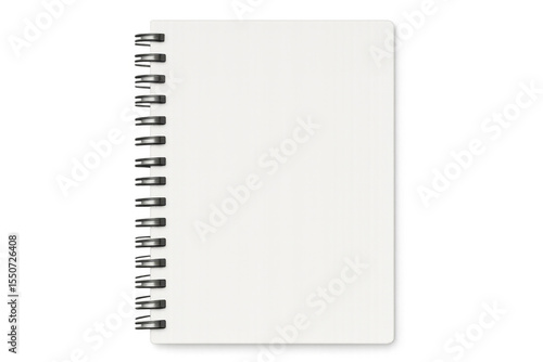 Realistic spiral notepad with blank white pages on transparent background, perfect for showcasing designs and artwork