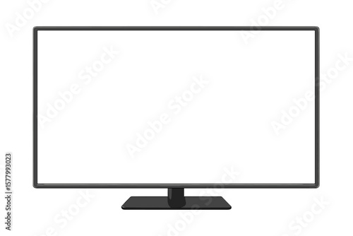 Realistic TV screen mockup with blank white display. Modern television set or computer monitor frame for presentation. Isolated electronic device template vector illustration.