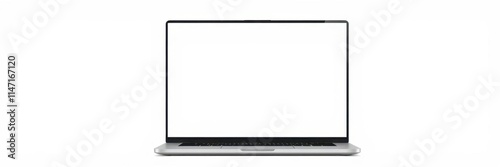 Realistic vector illustration of a sleek laptop with a blank screen, isolated on a white background, white background, electronic, computer