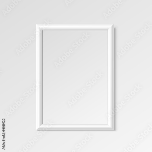Realistic vertical frame for paintings or photographs hanging on the wall. MockUp Template For Your Design. Vector illustration.