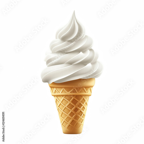 Realistic White Soft Serve Ice Cream in a Crispy Waffle Cone Isolated on Transparent Background. Generative Ai.