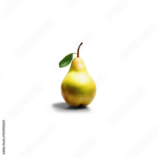 Realistic yellow pear on minimalist lime green background with soft shadow