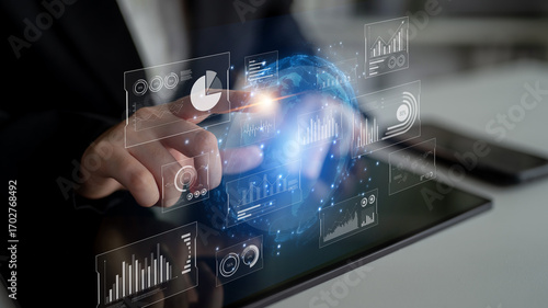 Real-time global data analytics dashboard visualizing insights from interconnected systems for decision-making, business analytics, and digital transformation Latch