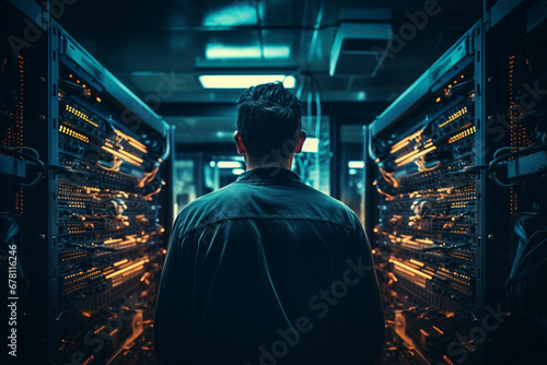 rear view of An IT engineer is busy configuring the servers, aesthetic look