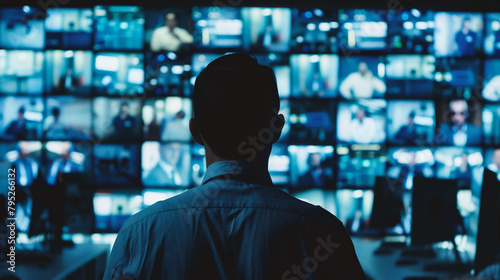 Rear view of businessman looking at screens