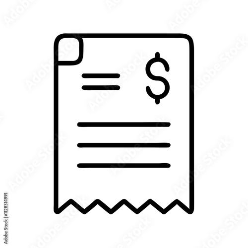 receipt icon, shopping vector icon, ecommerce vector icon - black outline icon of receipt symbolizing social media, Shopping and E-commerce in simple design.