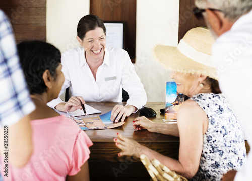 Receptionist with guests