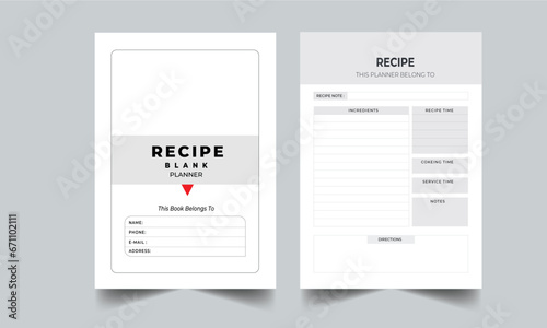 Recipe Blank Page Collection of recipe card with cover page design templates. Printable recipe card template. Recipe planner template