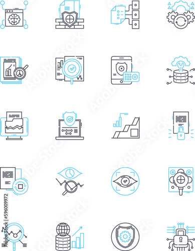 Record keeping linear icons set. Database, Ledger, Archive, Logs, Memo, Repository, Storage line vector and concept signs. Recordings,Catalogue,Diary outline illustrations