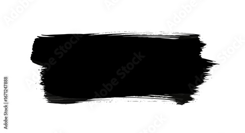 Rectangular Black Brush Stroke with One Jagged Edge and One Straight Edge on Isolated White Background