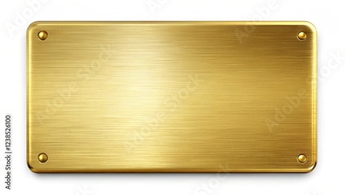 Rectangular gold metal plate with a smooth, polished surface and rounded edges, showcasing a reflective finish. Ideal for design and branding purposes. Isolated on white background,